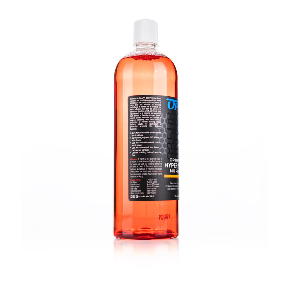 Optimum No Rinse™ (ONR™) Hyper Foam combines our revolutionary polymer-based NO RINSE™ rinseless car wash with the power of foam. With the addition of foaming surfactants, it makes for a versatile rinseless car wash solution. Use it as a traditional rinseless wash, car wash soap replacement, or a foaming pre-wash in a foam cannon or foaming sprayer.