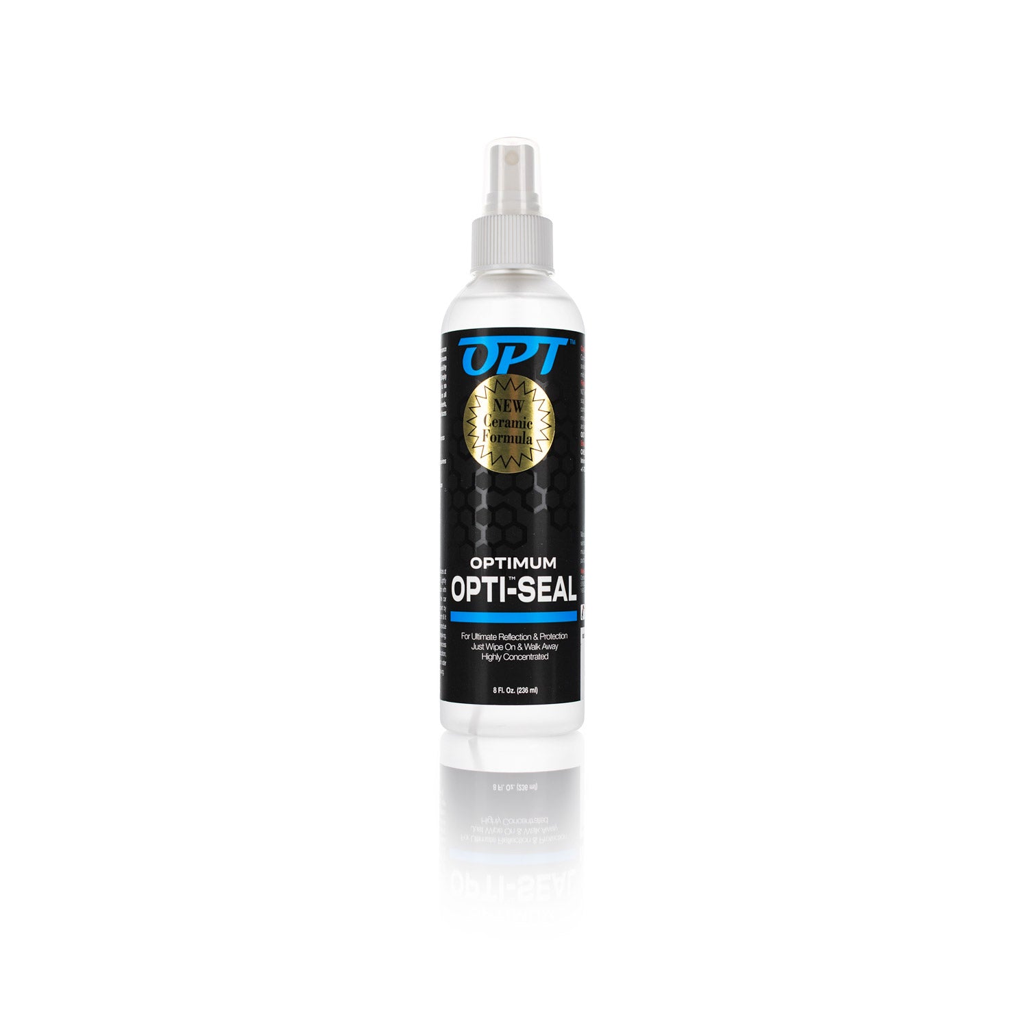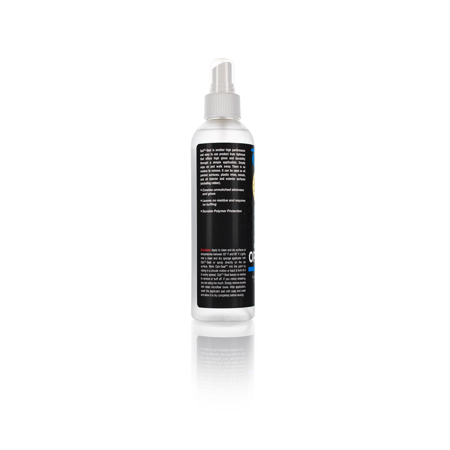 The science behind Opti-Seal is incredible. The hyper concentrated polymer sealant begins cross-linking as soon as it hits the paint. Opti-Seal flashes almost immediately to leave a polymer film on the paint. Opti-Seal is not a short-cut product. It is a state-of-the-art, stand-alone spray sealant that provides real, durable protection for paint, plastic trim, and wheels. This is a last step product, not a maintenance product. After polishing, apply Opti-Seal and walk away. Opti-Seal is the only paint protection your vehicle needs.