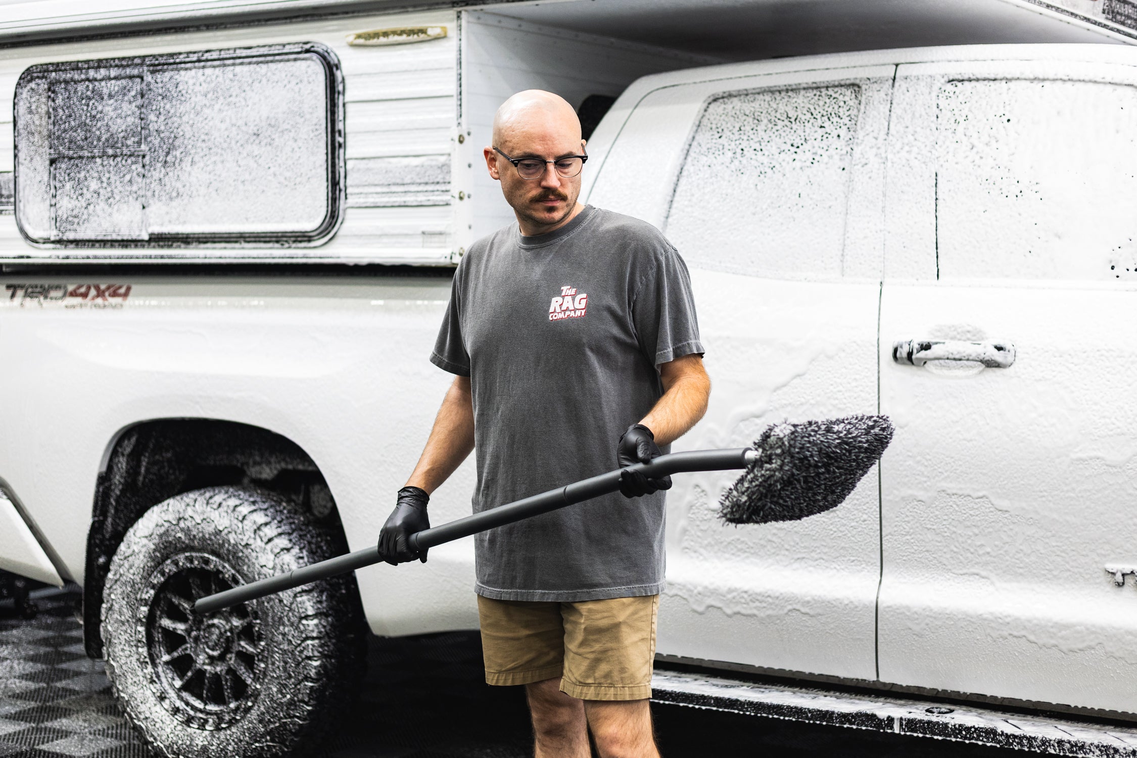 The Rag Company-edition Mitt on a Stick is your go-to tool for washing large and tall vehicles without the awkward balancing act. That RV you can’t reach? No problem. Featuring a super soft microfiber mitt along with a sturdy pole that helps you reach every inch with ease, you’re all set for getting to the grime in hard to reach places, while still being gentle on paint. The head locks into multiple angles and smoothly rotates front to back, making it easy to glide over every surface and hit those tricky spots without missing a beat.