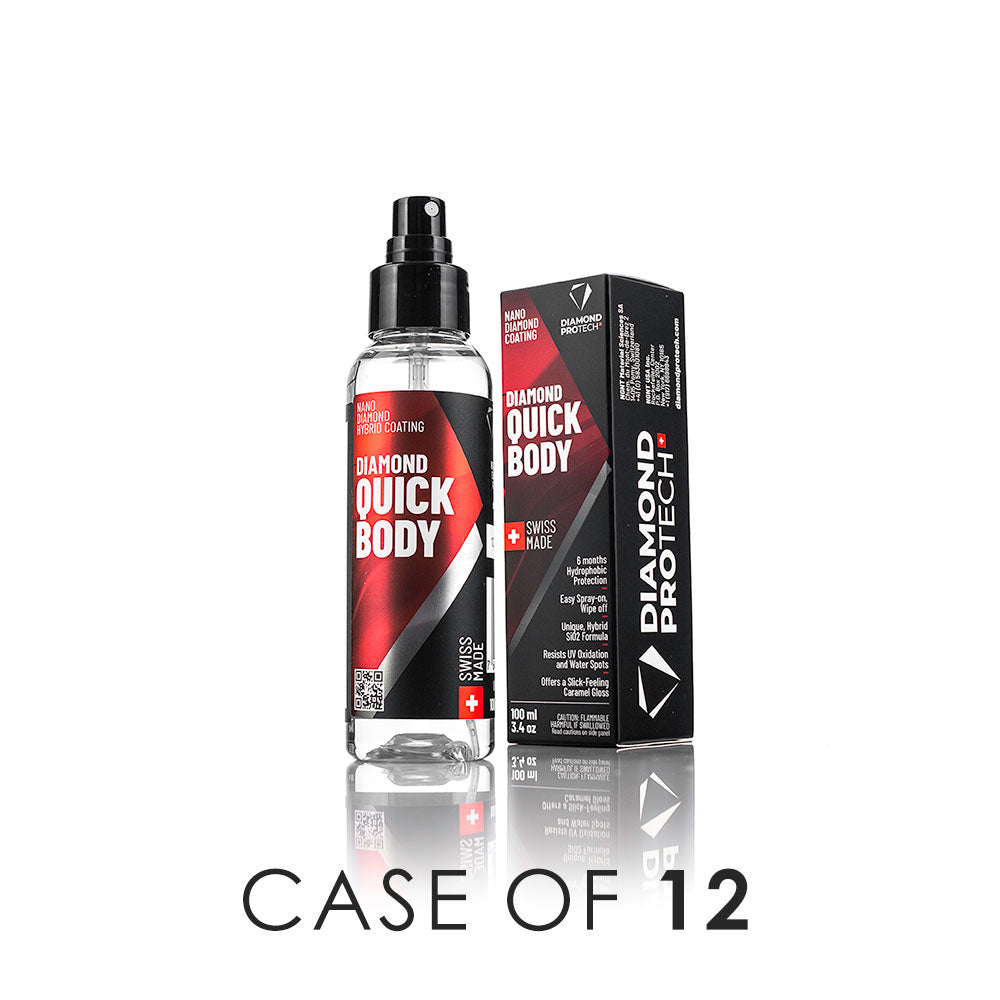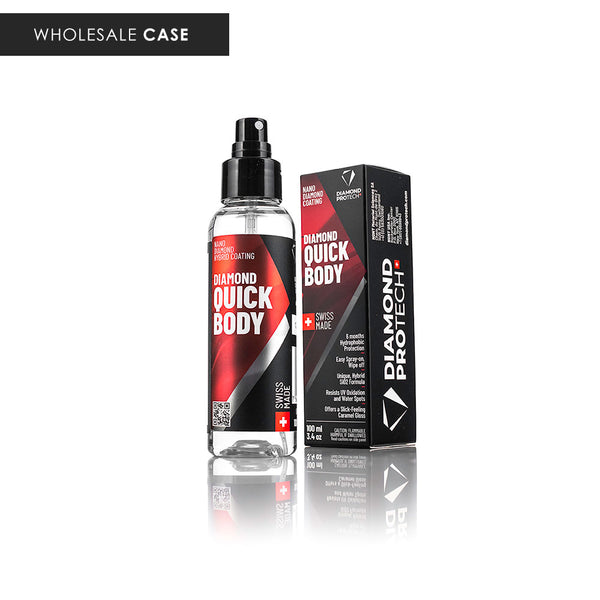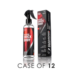 Diamond Quick Body is an effortless, nanodiamond hybrid Si02 spray coating that yields 6 months of hydrophobic protection. This spray and wipe formula will create a slick, caramel gloss appearance on any coated or non-coated vehicle. Immediately results in a finish that will resist UV oxidation and repel water easily.