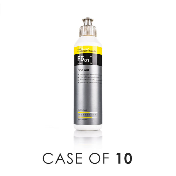 Fine Cut F6.01 is an intelligent machine polish of the latest generation with unique aluminum oxide quality. The intelligent grain size ensures very quick, complete removal of wash system scratches and similar traces of use and gives the paintwork a long-lasting deep sheen. Sanding marks left behind by 2500 grade sanding media are removed effortlessly. Fine Cut F6.01 is therefore ideally suited for perfect reconditioning of medium to heavily weathered paintwork. Perfectly coordinated for the treatment of scratch-proof paint.